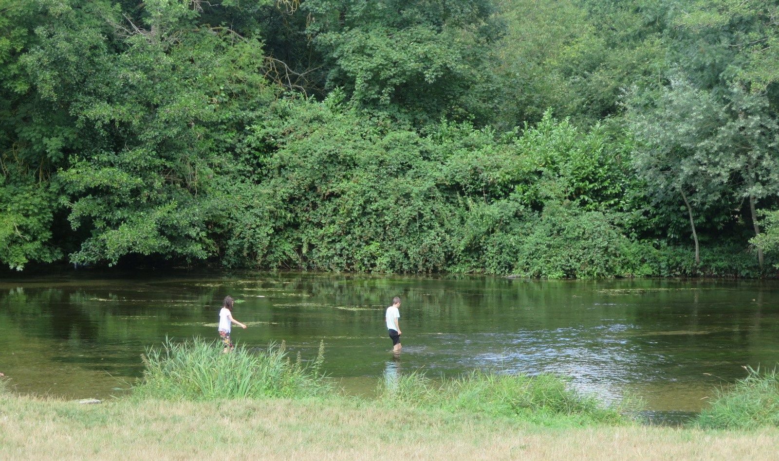 -Aux premiers rayons de soleil, j'assiste au va-et-vient des glacières, des tables de pique-nique, des parasols, des sandales, des shorts et des marmailles joyeuses qui s'emparent de la prairie. Les pieds dans les eaux fraîches de l'Avre, je les entends s'exclamer : « Ah, c'est génial, le Pont Hoddé ! »